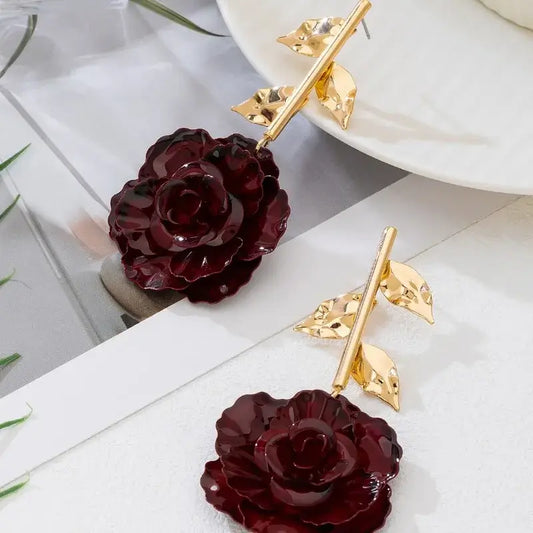 Dark Red Rose Flowers Stud Earring Women Girls Gifts Jewelry