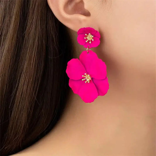 Rose Color Flower Earrings Fashionable Long Flower Earrings Jewelry Wedding Gift Accessories Wholesale