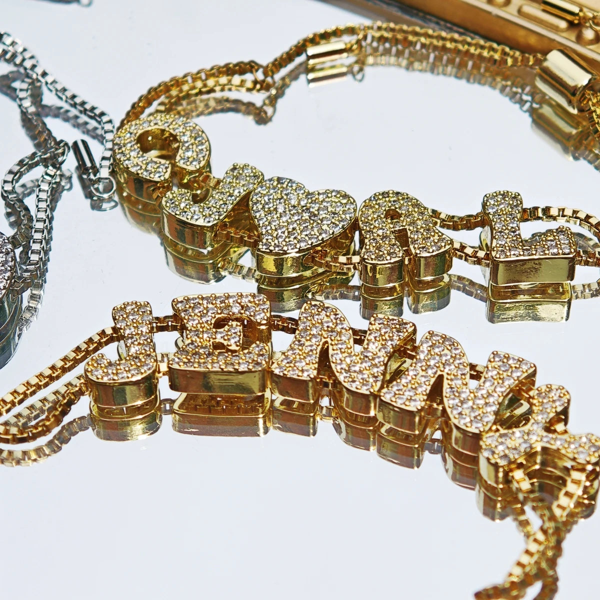 Personalized Customization 26 Letter Copper Inlaid With Diamonds 18k Gold Adjustable Bracelet Mother's Day Holiday Gift