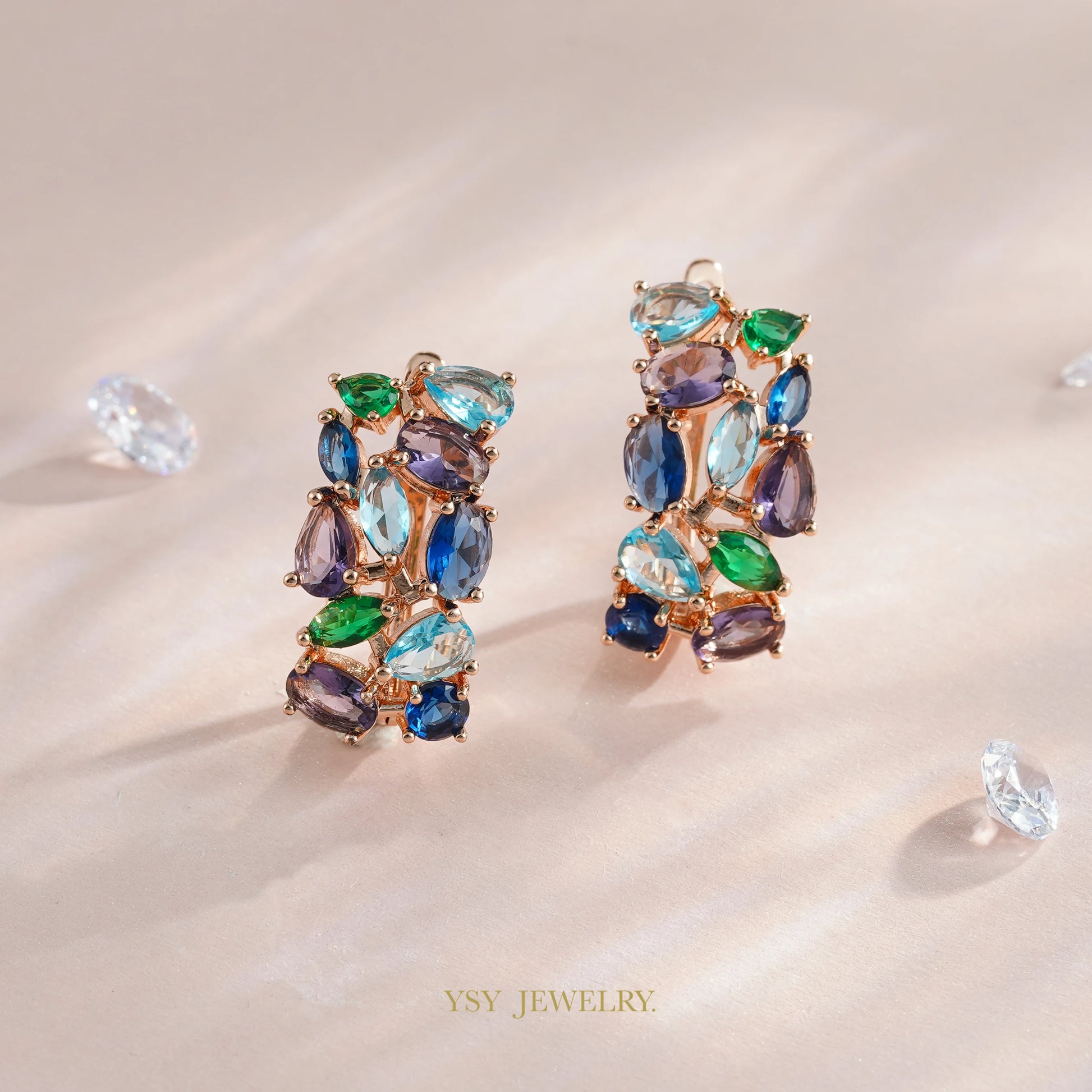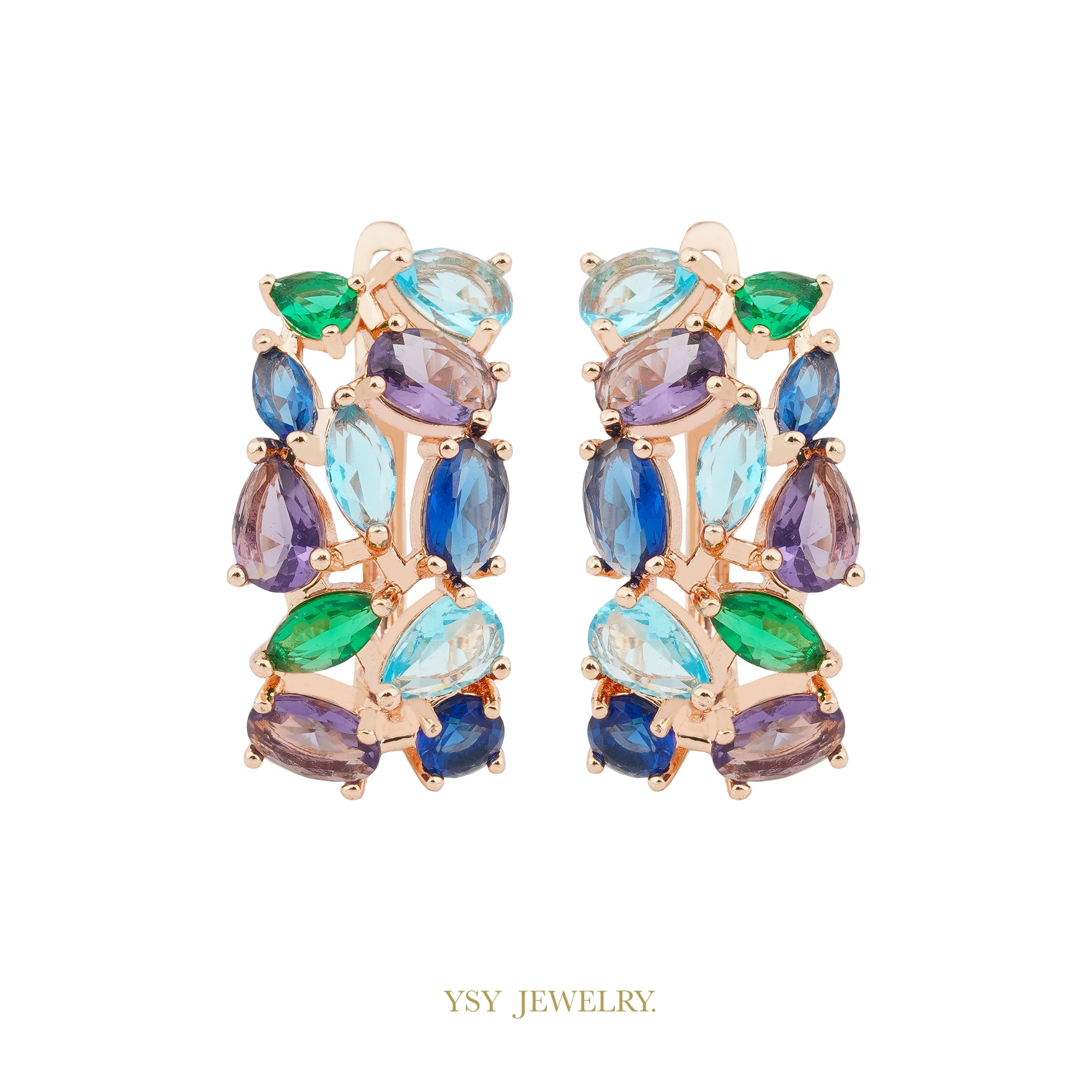 YSY Hot Selling Inlaid Multicolor Stone Hoop Earrings Fashion Jewelry For Women Copper Plated 585 Rose Gold Color Party Gifts